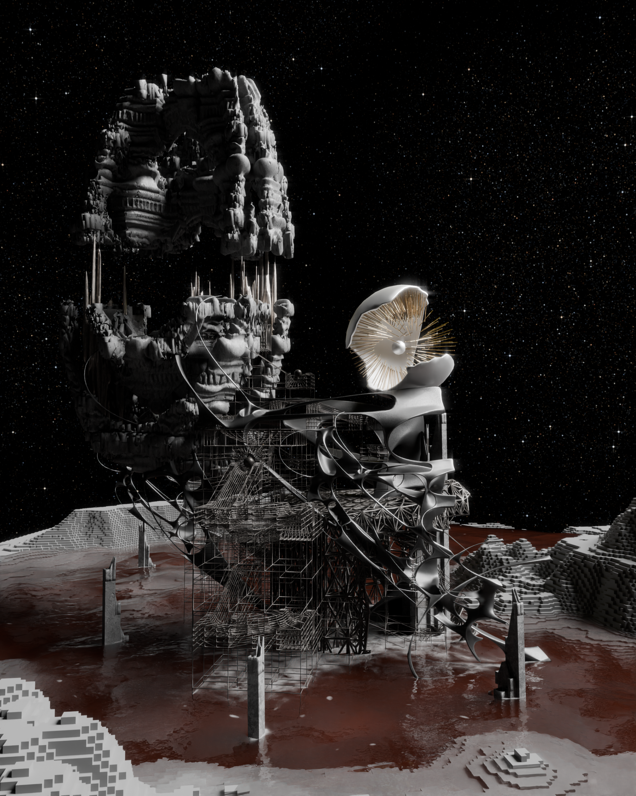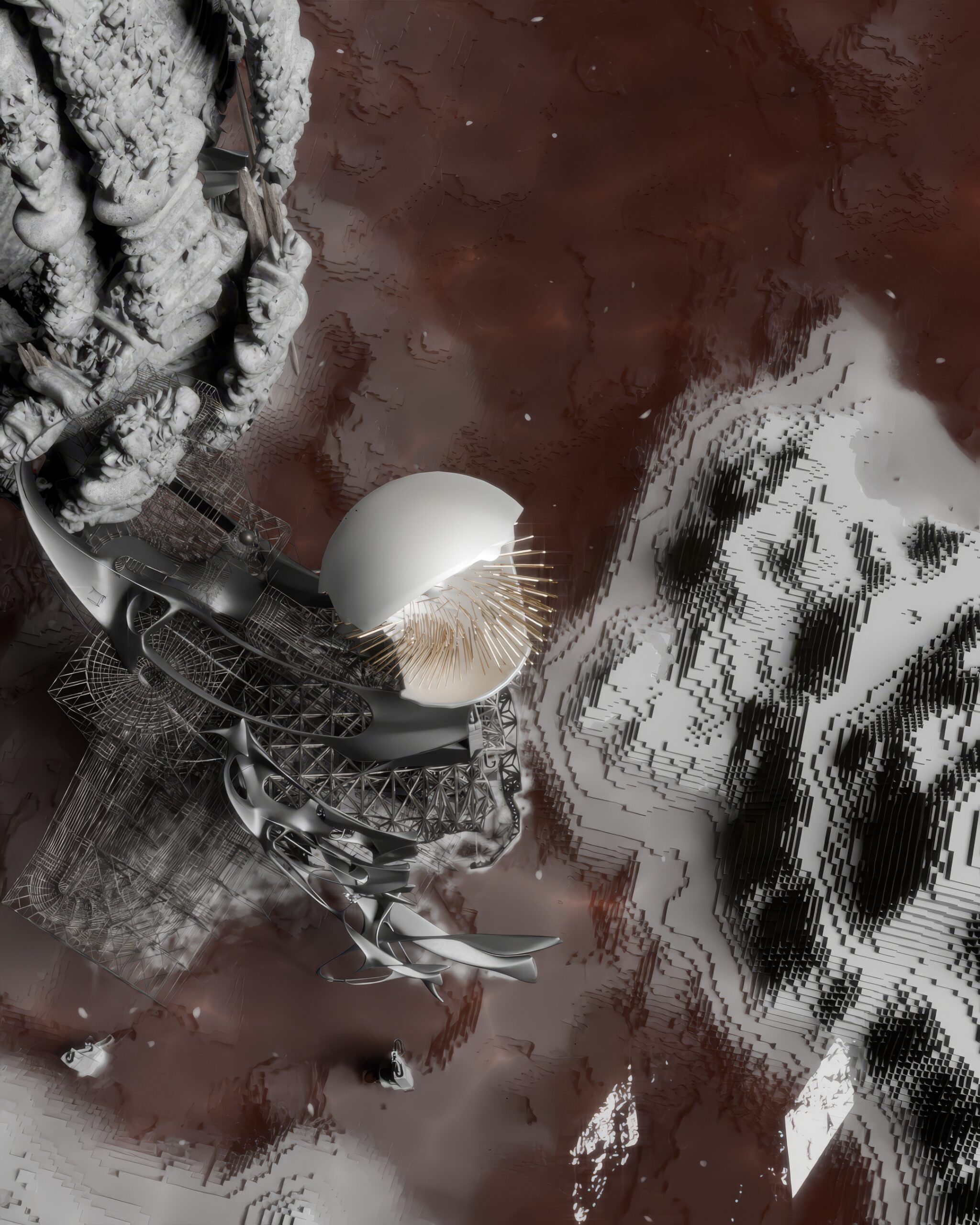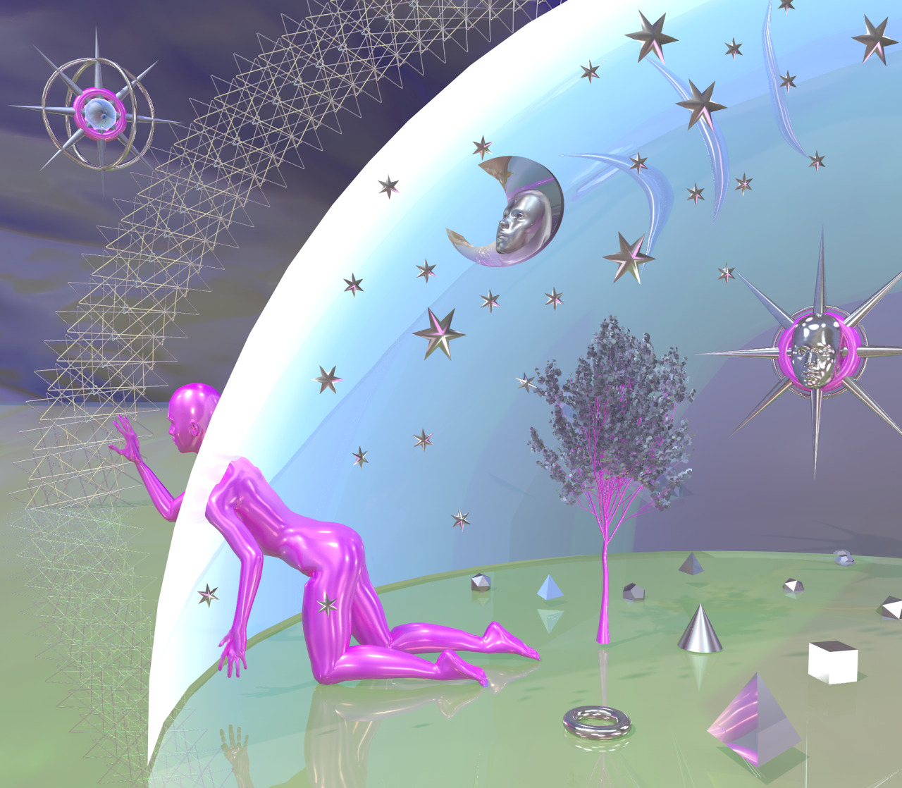From firm ground to shifting waves, solid dust dissolves into cybernated mist.